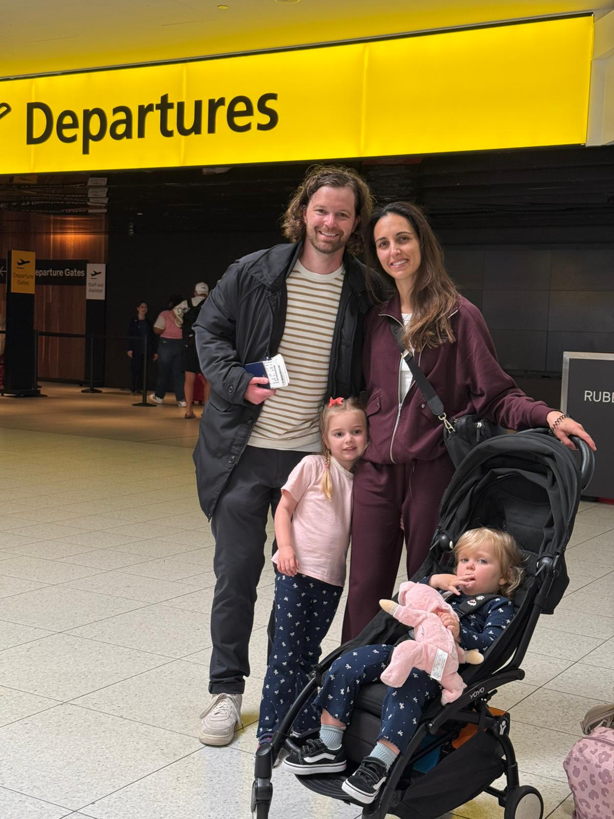 We arrived at the airport two and a half hours before our 5:10pm flight — deliberately early, given we had four large suitcases, two small ones, four backpacks, a pram, and two small children to navigate through check-in. We wanted time, not stress.