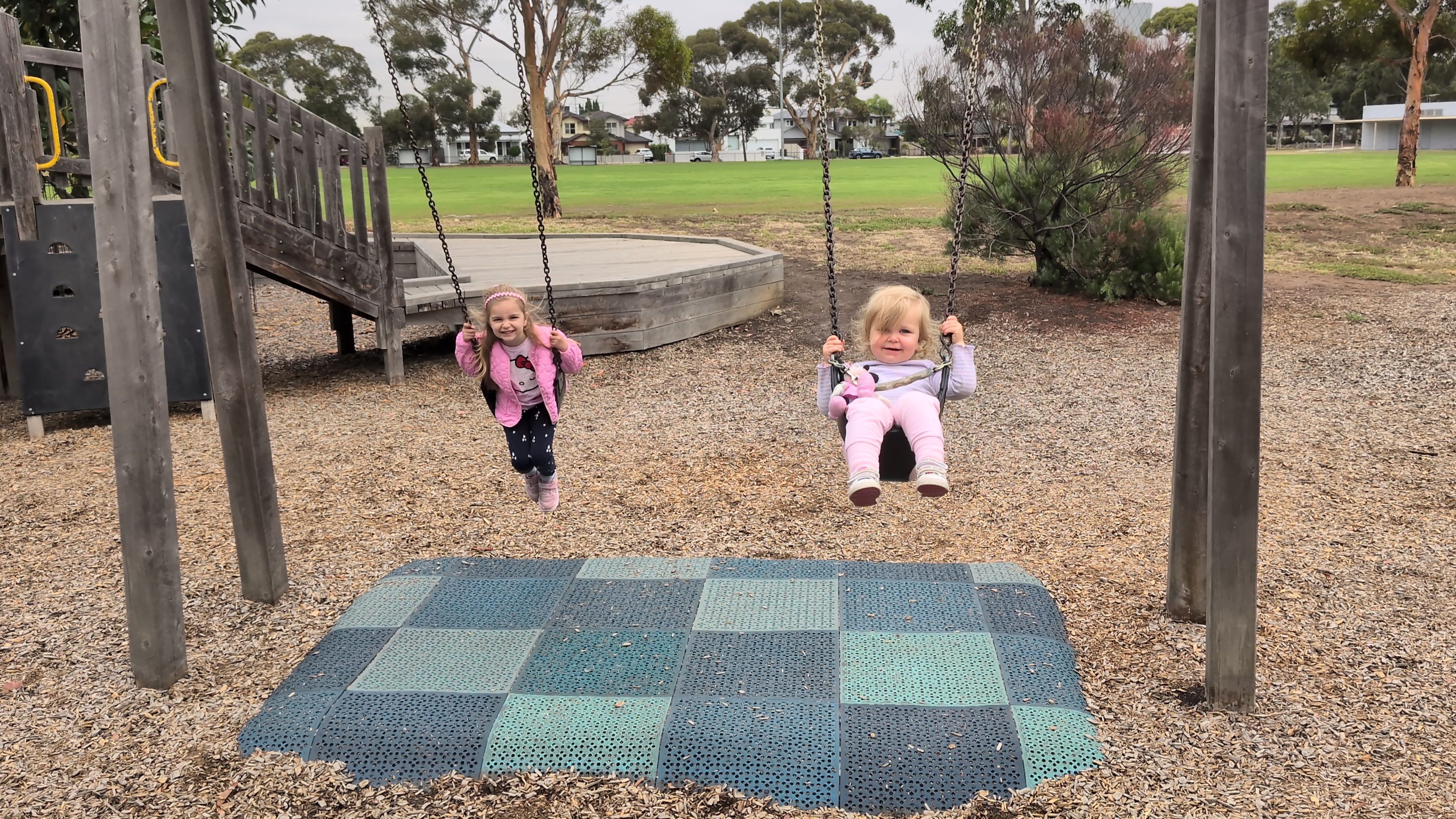 On the Thursday morning before our flight, I took the kids on one last Melbourne errand — a trip to the Salvation Army on Kororoit Creek Road in Williamstown to drop off some donations. Roadworks meant we couldn’t get to the Williamstown playground as planned, so instead we ducked into Edwards Reserve, one of our old stomping grounds. The kids had a blast and burned through a lot of energy, which, I hoped, would mean they would sleep on the long flights ahead.