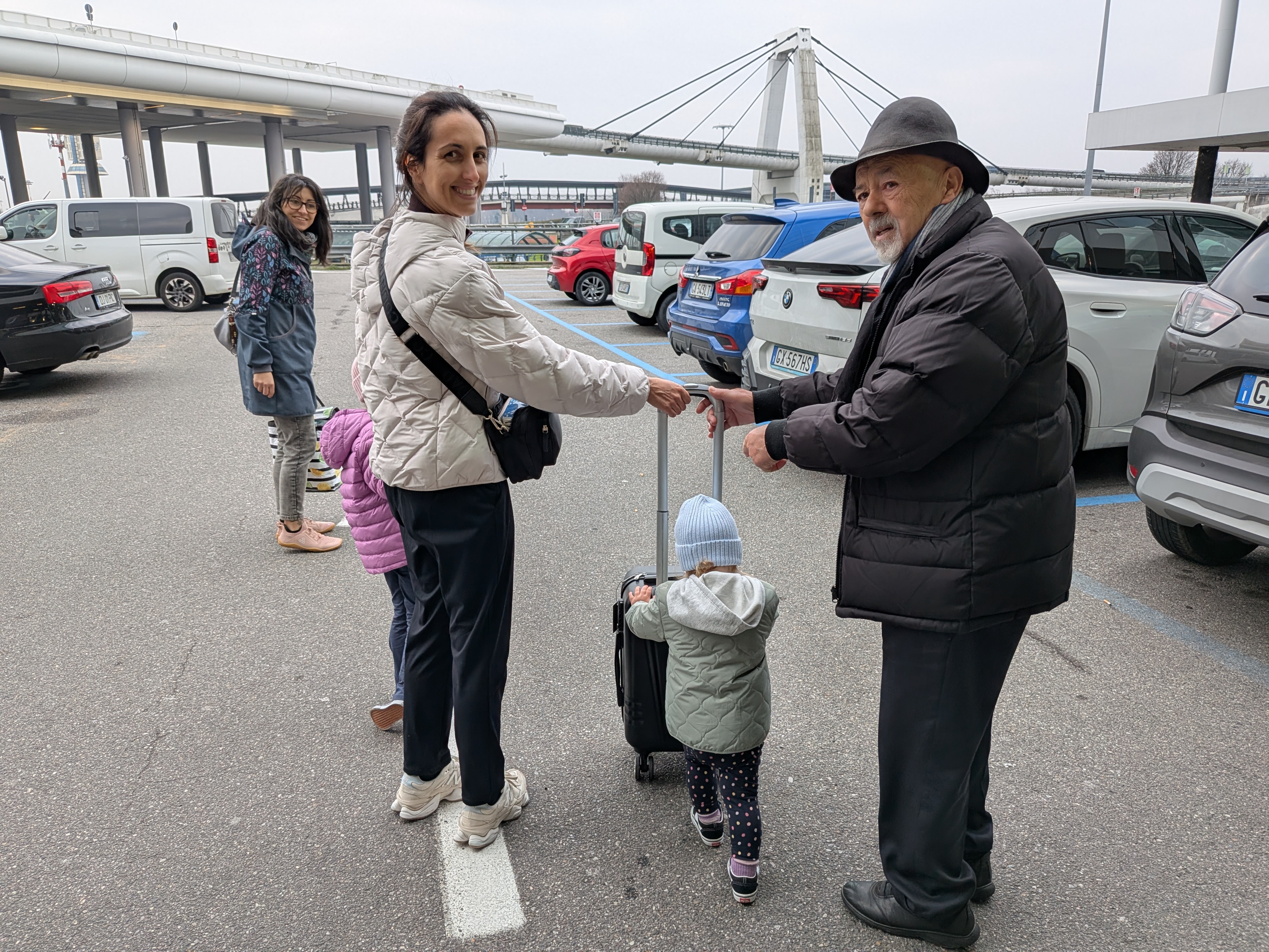 Back home, the afternoon was a flurry of final tasks — preparing food for the kids’ journey, packing and repacking bags to make sure we hit the weight limits, and tying up whatever loose ends remained. We said our goodbyes to Nonna Anna and Nonno Bert, then drove over to pick up Dom. Here we said farewell to Nonna Frankie. Dom came with us to the airport, and then drove the Tarago back to his place. And just like that, the journey had begun.