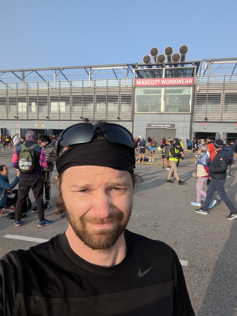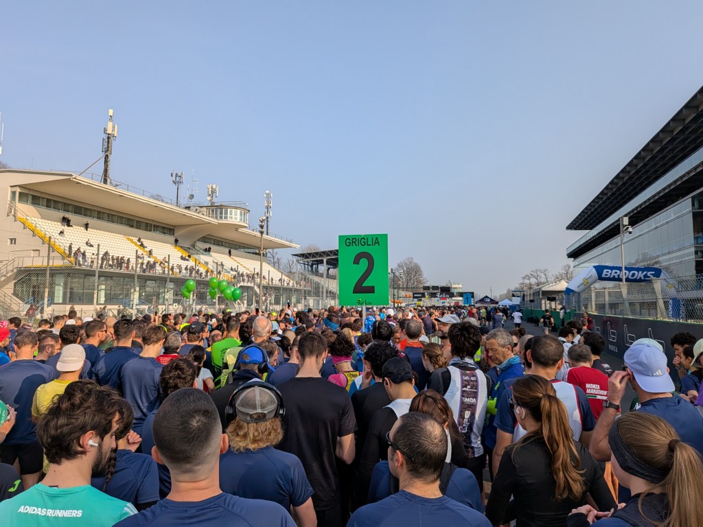 After a light warm-up, I found my place in the starting huddle. I’m not a devoted F1 follower, but standing on the starting grid at Monza, even in running shoes and surrounded by 7,000 other runners, carried a weight that was hard to ignore. There’s a history baked into that place. You feel it.